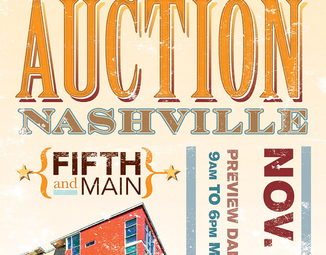 Brochure for the auction of 26 luxury condominiums in Nashville. Certain graphic elements were "scuffed" to give the brochure an old music poster feel.