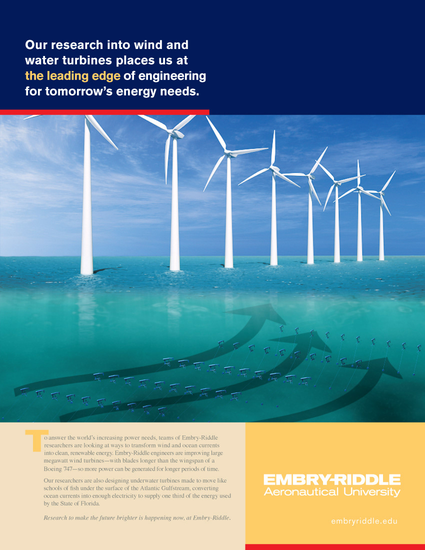 A proposed series of ads featuring real life research projects at the university. Changes in ERAU staff put these on the back burner—apparently forever.