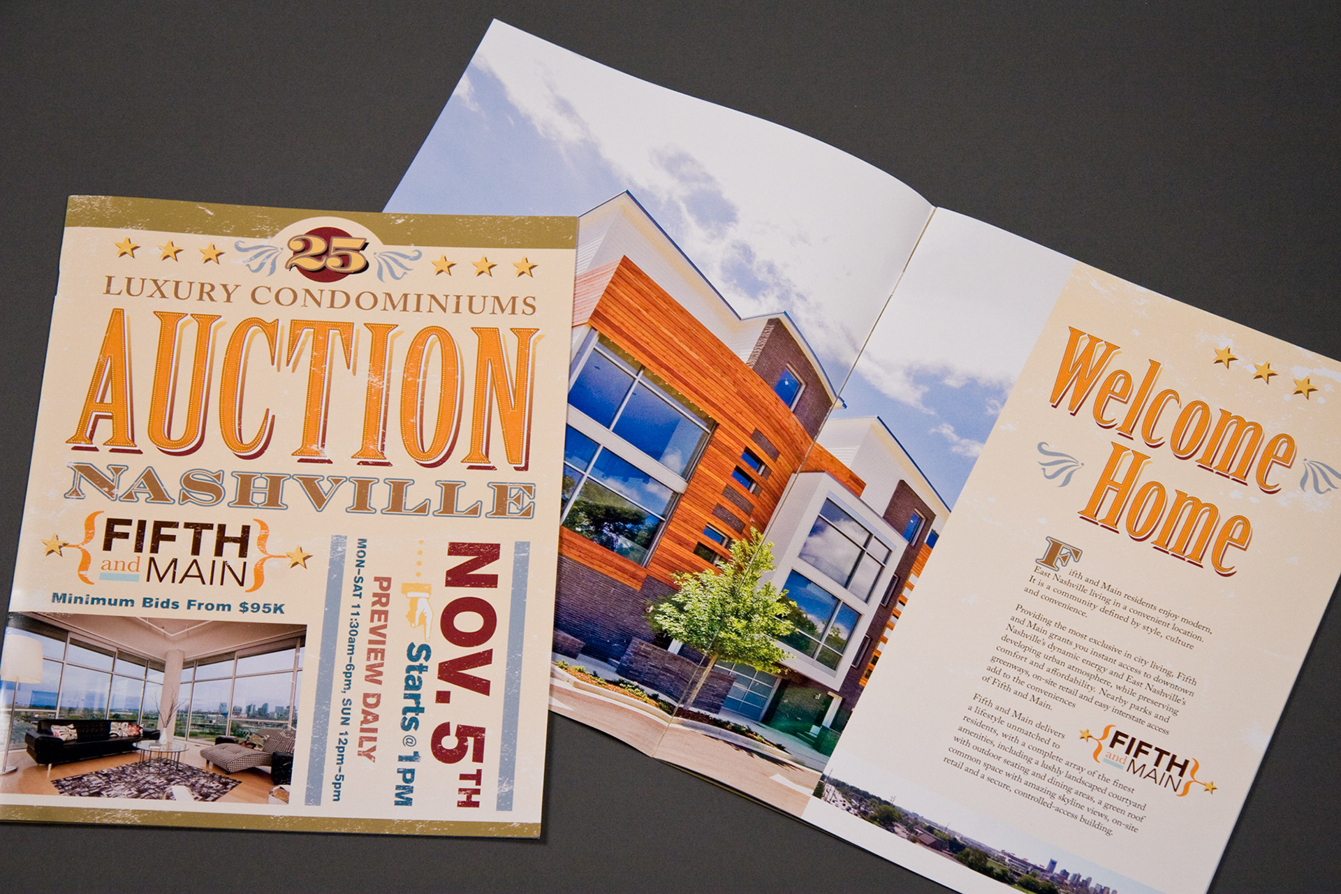 Brochure for the auction of a luxury condominium project in Nashville. I actually thought the old music poster look clashed with the post-modernist style of the building but the sale was successful so everyone must have overlooked this inconsistency.