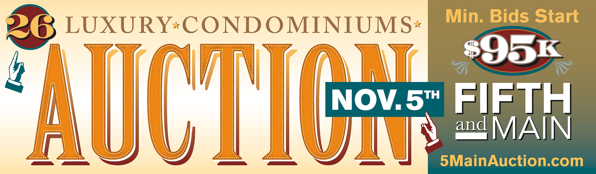 Outdoor board for Fifth and Main luxury condominium auction in Nashville. The project sold out quickly.