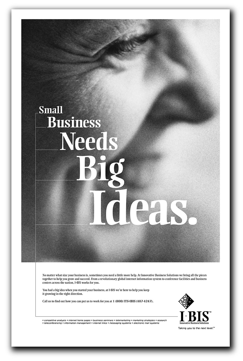 IBIS is a company whose mission is to help other small companies with everything from marketing to executive office space. These are full page newspaper ads.