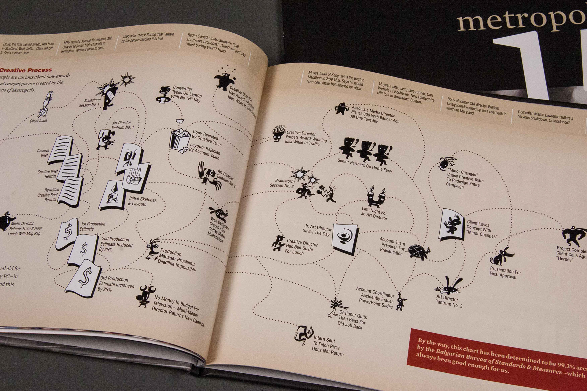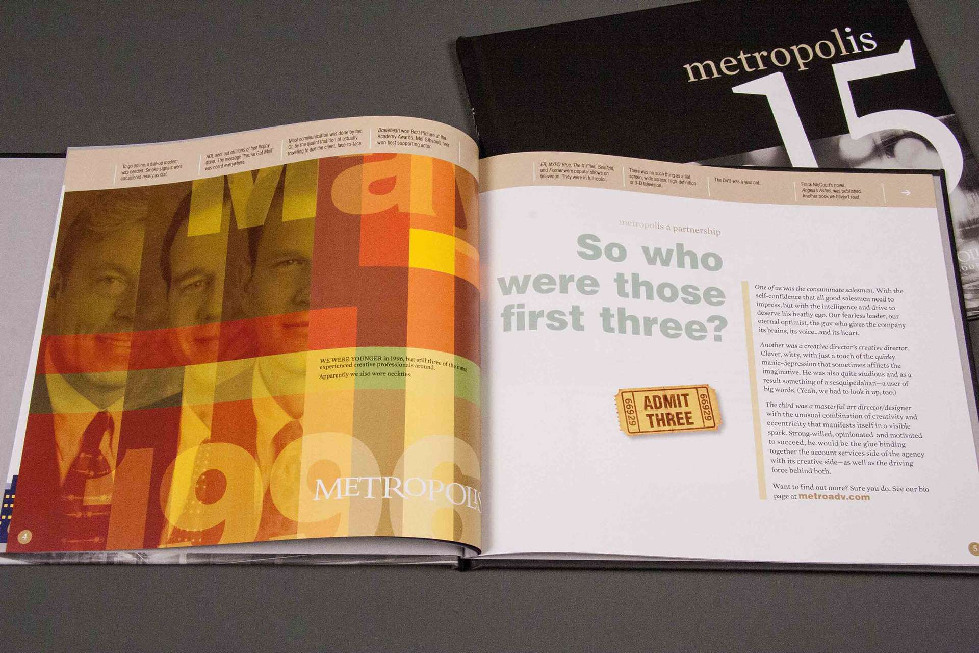 To celebrate the company's 15th anniversary, I wrote and designed a humorous look back at 1996 and all the things that happened that year. A timeline across the top of the pages gave information about events such as the "birth" of Dolly, the first cloned sheep.