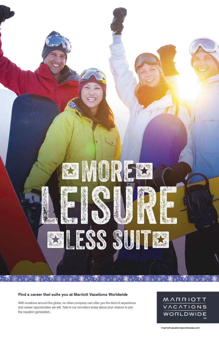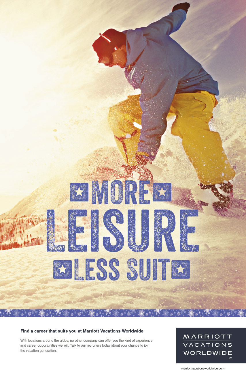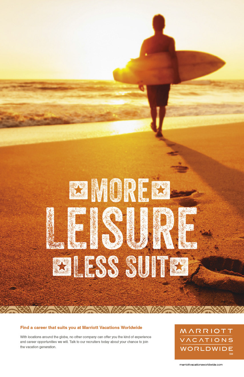 A series of college campus employee recruitment posters for Marriott Vacations Worldwide, an international vacation resort company.