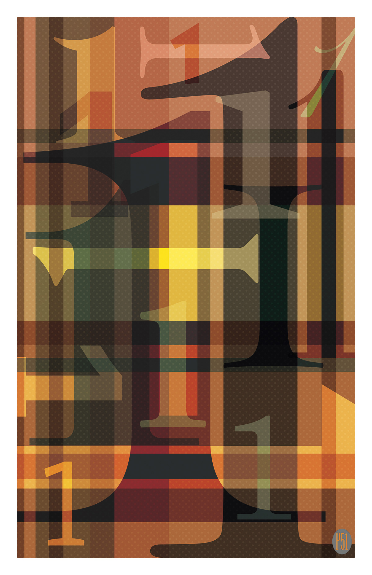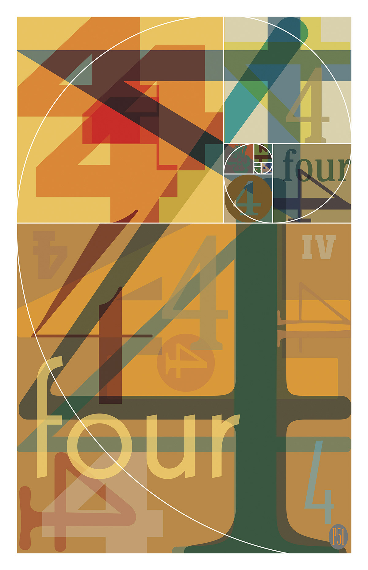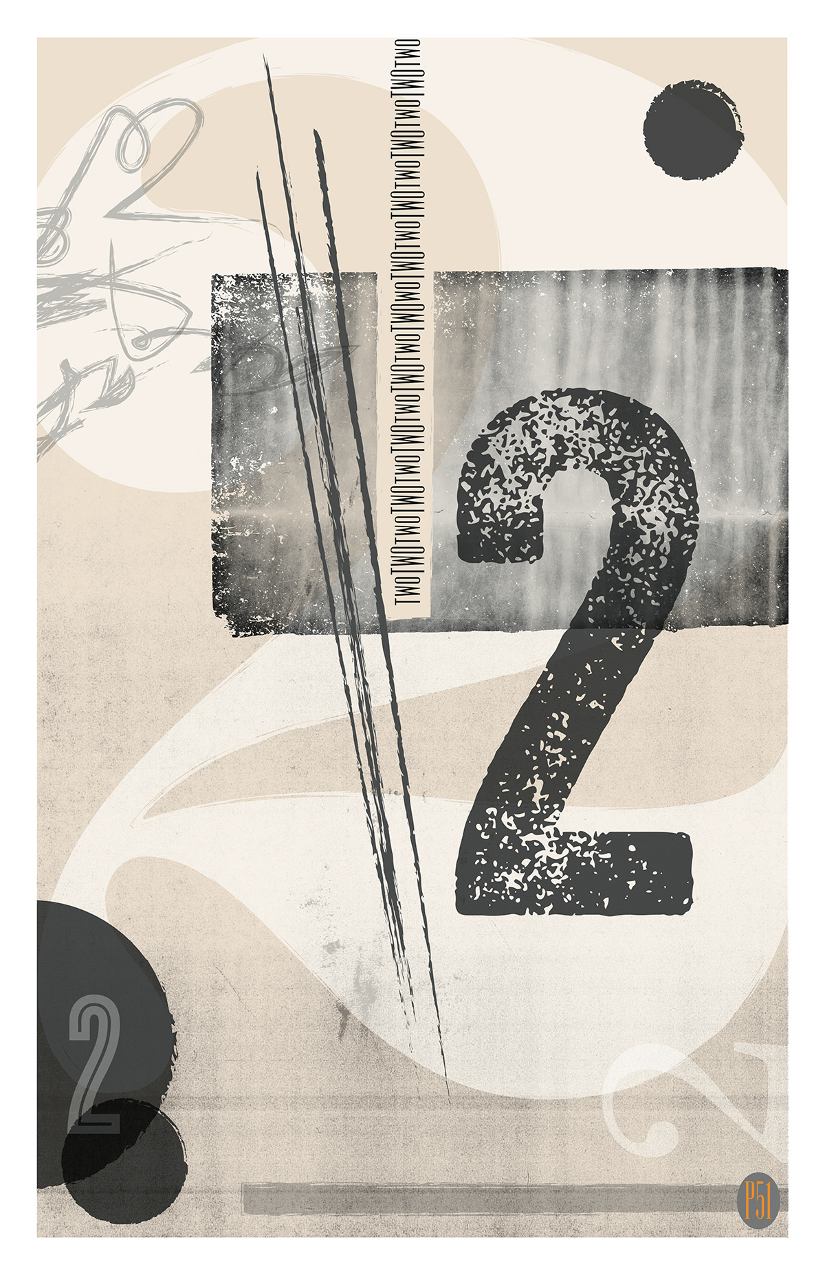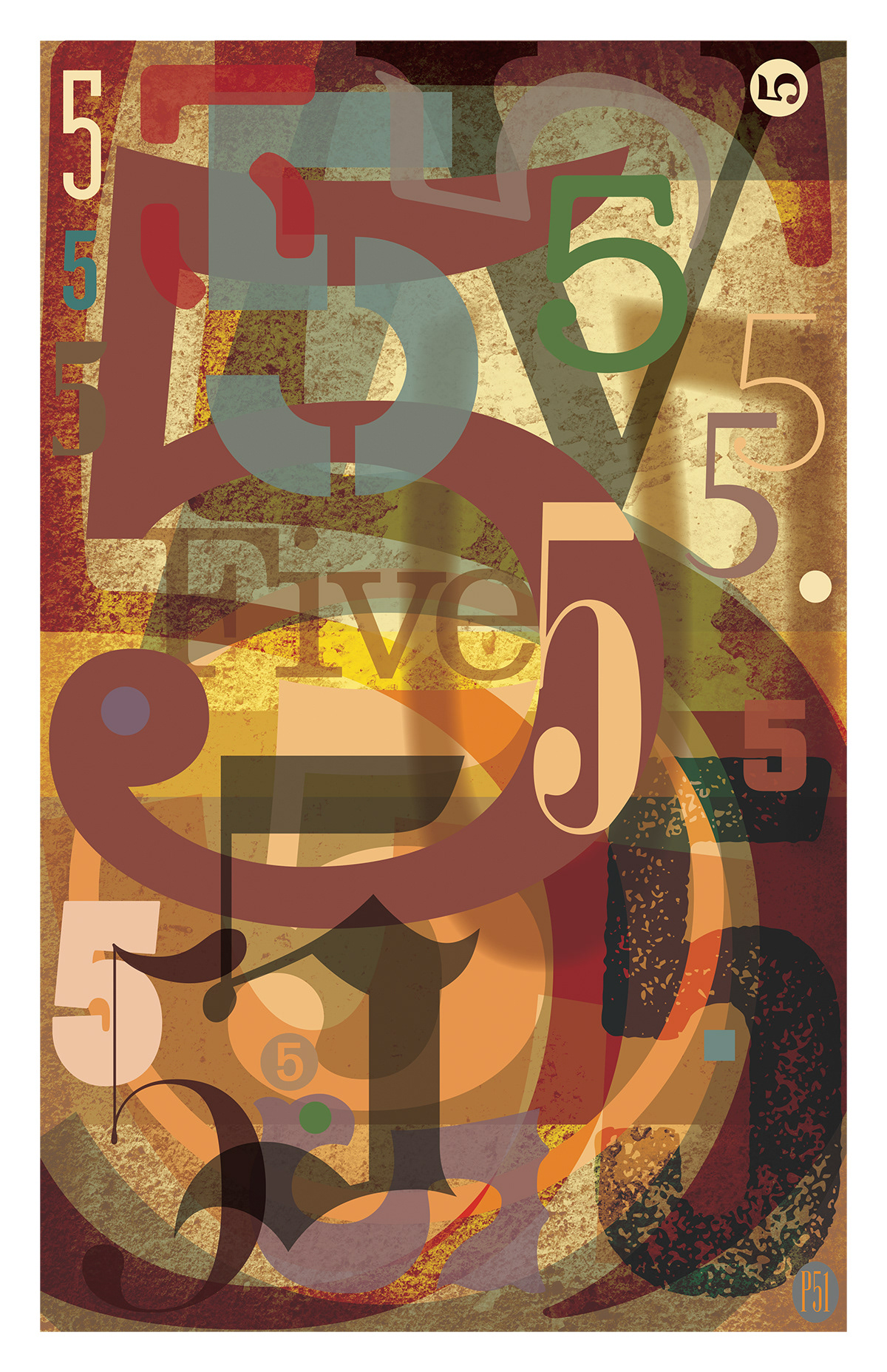 Personal Work: A series of posters featuring the numbers 1–5. The plan is to continue with 6–9 and add zero at the last. Or first. Whatever…